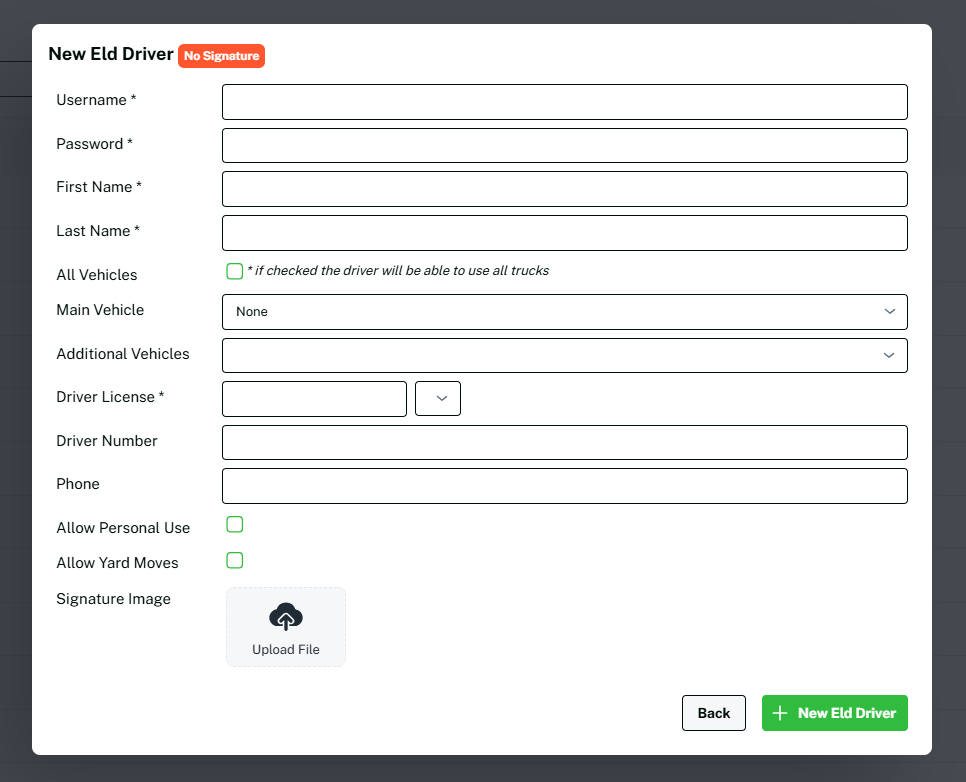 Make sure you have created the vehicle that this driver will be using, if you have not and it’s a new vehicle go to the Helpdesk called ‘How to Add Truck?’ and follow the steps there, after that come back and follow the steps here.