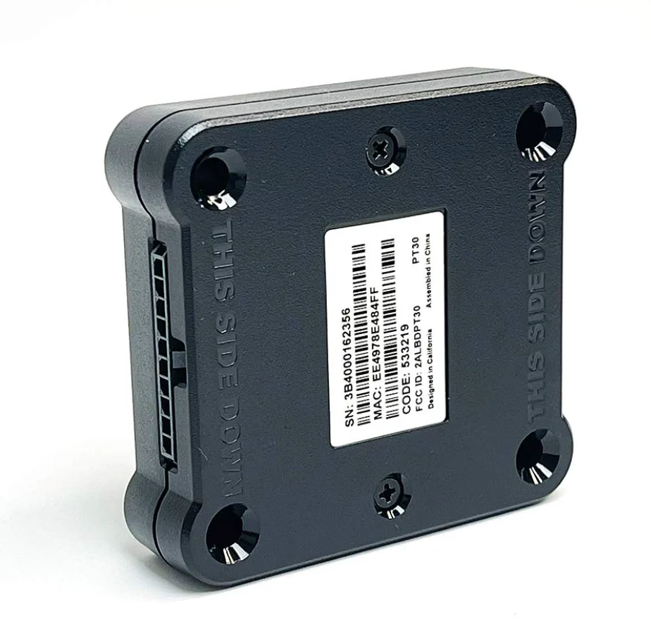 The application on both iOS and Android uses Bluetooth to connect to the PT30 device. The PT30 (ptbox) device looks like this:
